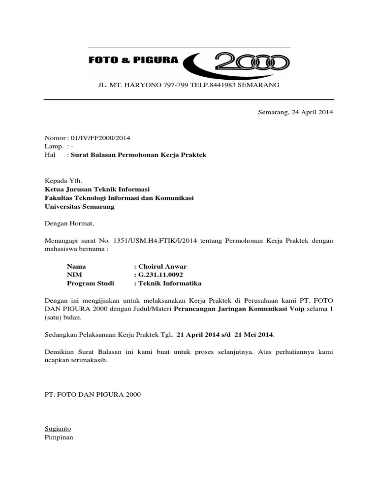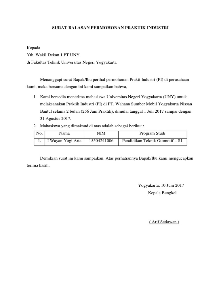 Surat Balasan Pkl Berhasil Pdf